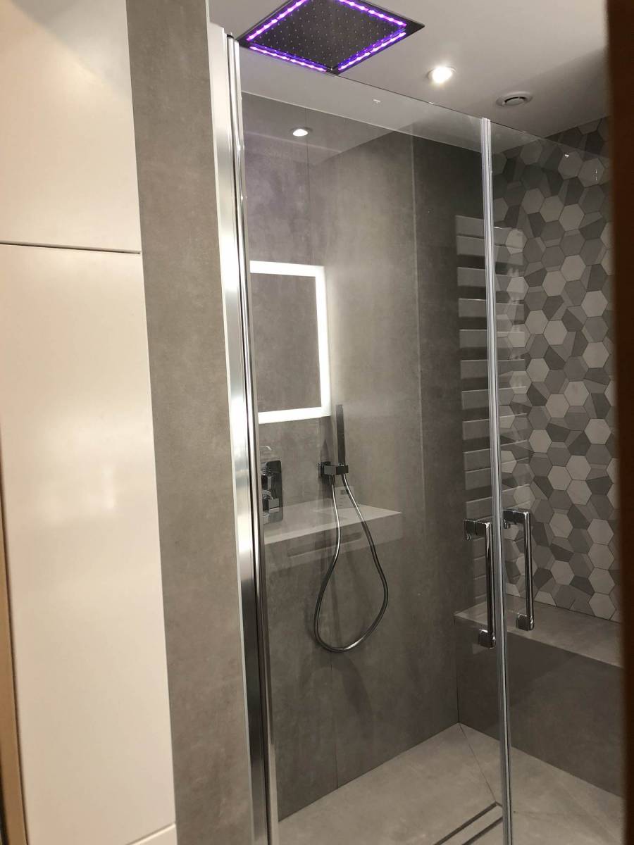 Les formats de ce carreaux sont idéal afin d’éviter les joint dans la salle de bain et donc éviter les moisissures, vous pouvez-d ‘ailleurs constater l’efficacité cliquez-ici. Ce carrelage de faible épaisseur que nous avons posé dans cette salle de bain à Castillon est avantageux car très hygiénique et résistant.