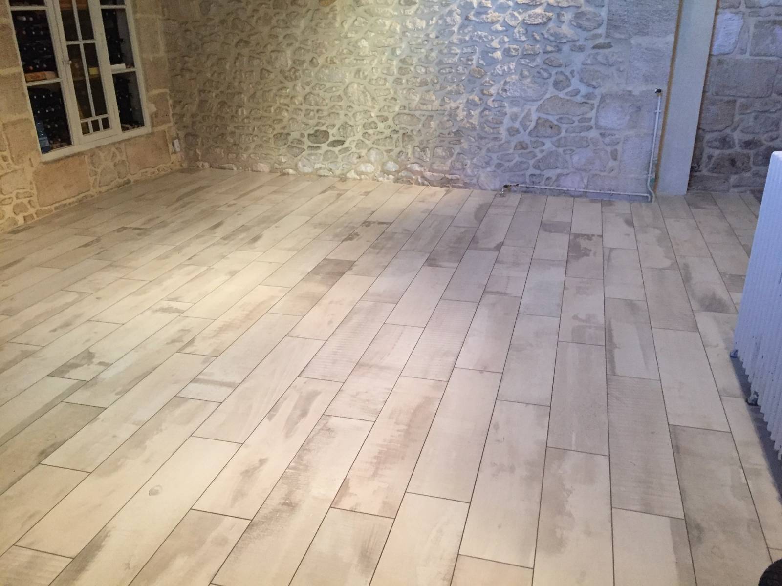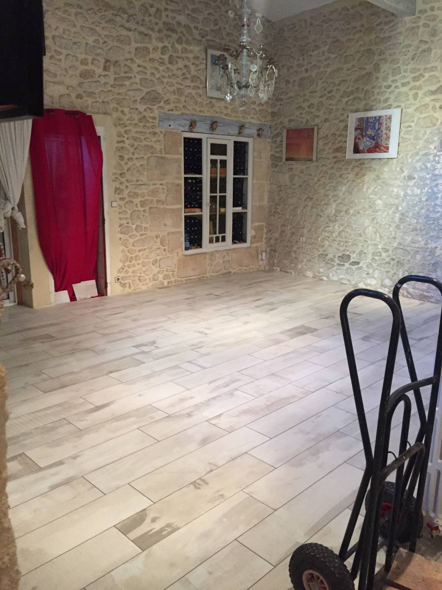 Carrelage et bain de A à Z expert du carrelage, vous présente une réalisation de carrelage imitation bois dans une maison en pierre. Nous travaillons avec des carreleurs de Libourne, Coutras, Montpon-Ménestérol, Castillon-la-Bataille, Créon, Saint-André-de-Cubzac et bien évidement les communes limitrophes à Libourne.