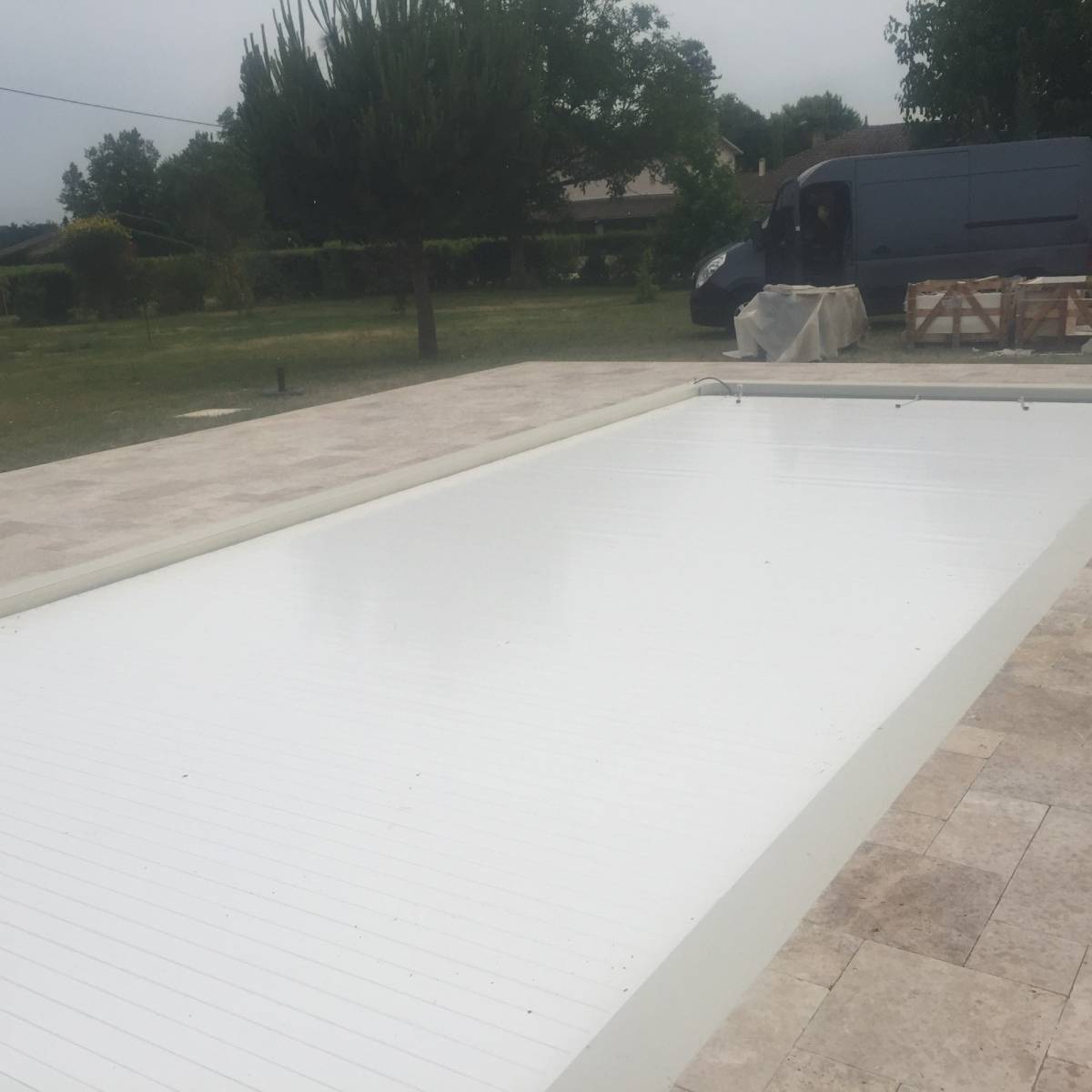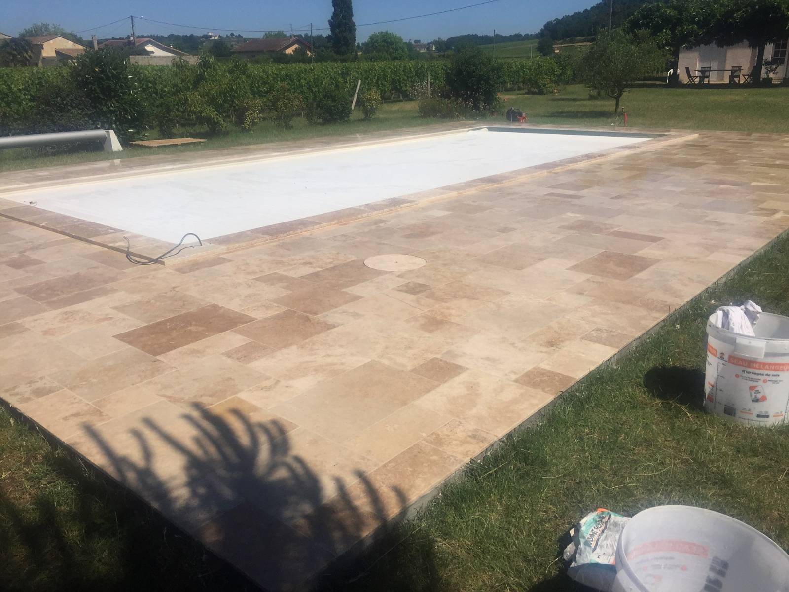 Le travertin est un produit parfait pour ce marié avec nos paysages du Sud-Ouest et nos maisons traditionnels. Sur ce chantier nous constatons l’harmonie entre le travertin, la piscine, la maison et notre paysage Libournais.